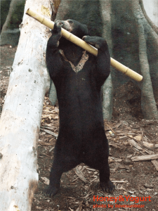放飼場に残っていた竹を持って、開園直後、朝からハイテンション。